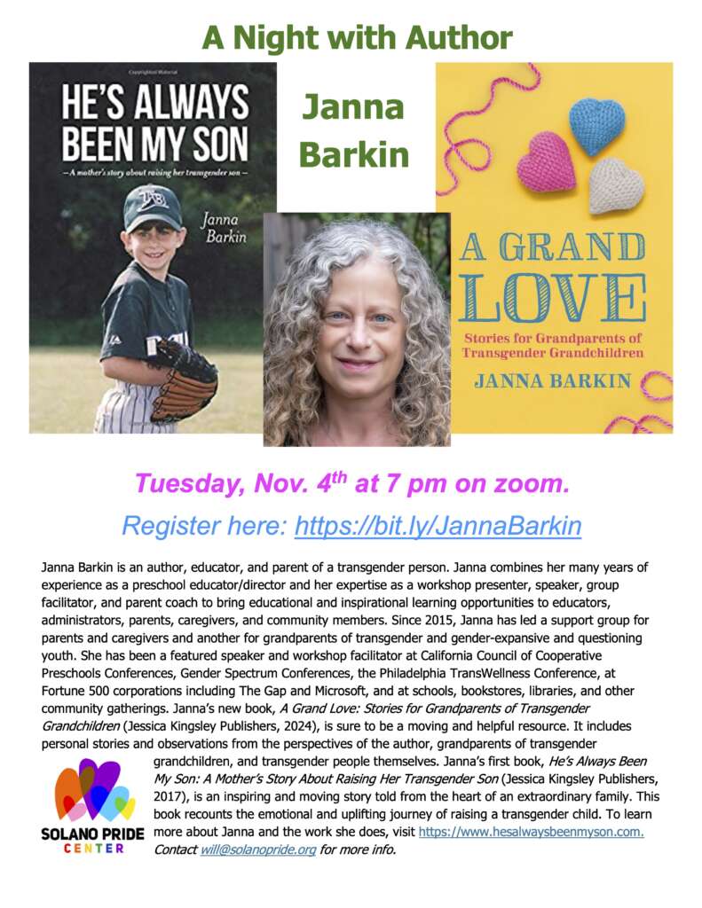 A Night with Author Janna Barkin, who wrote “He’s Always Been My Song” & “A Grand Love: Stories for Grandparents of Transgender Grandchildren” recording is here!