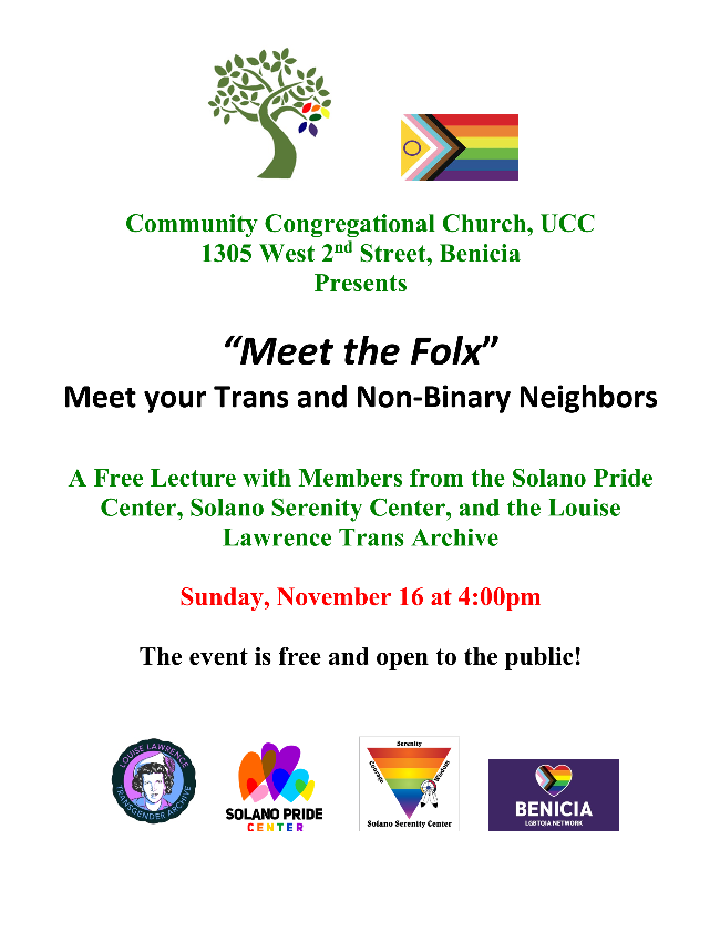Trainings & Presentations: coming soon. Yes, we do SB 923 trainings. Email will@solanopride.org for more information.