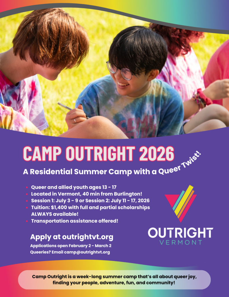 Mail: PO Box 5235, Burlington, VT 05402802-865-9677 | outrightvt.org